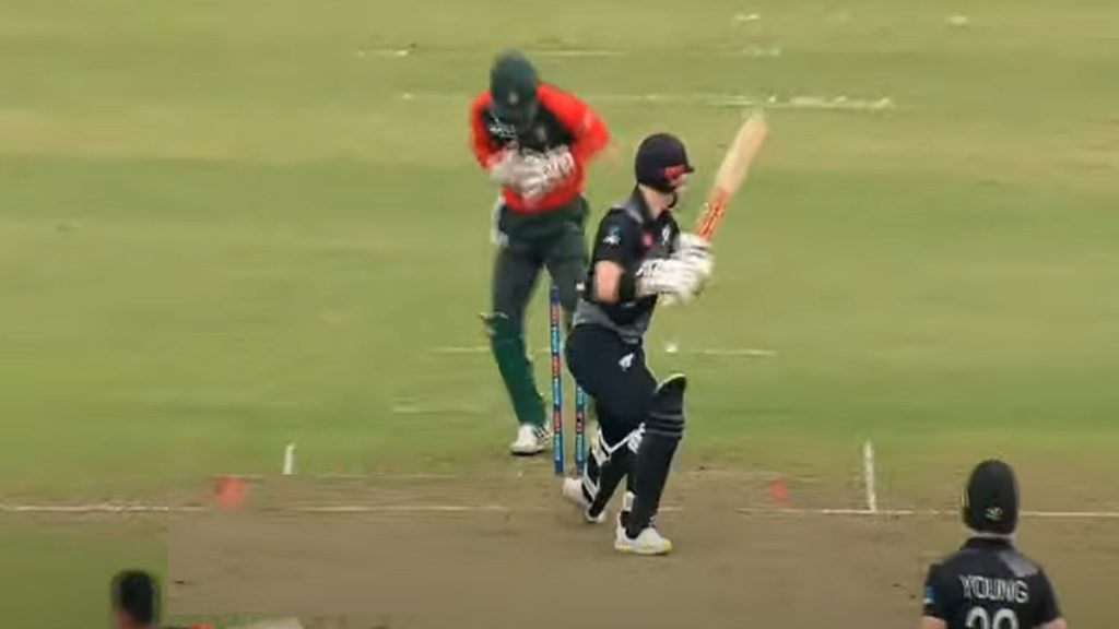 এর সাথে নিউজিল্যান্ড অধিনায়ক টম ল্যাথামকে চমৎকার টার্নে পরাস্ত করেন মেহেদী হাসান।