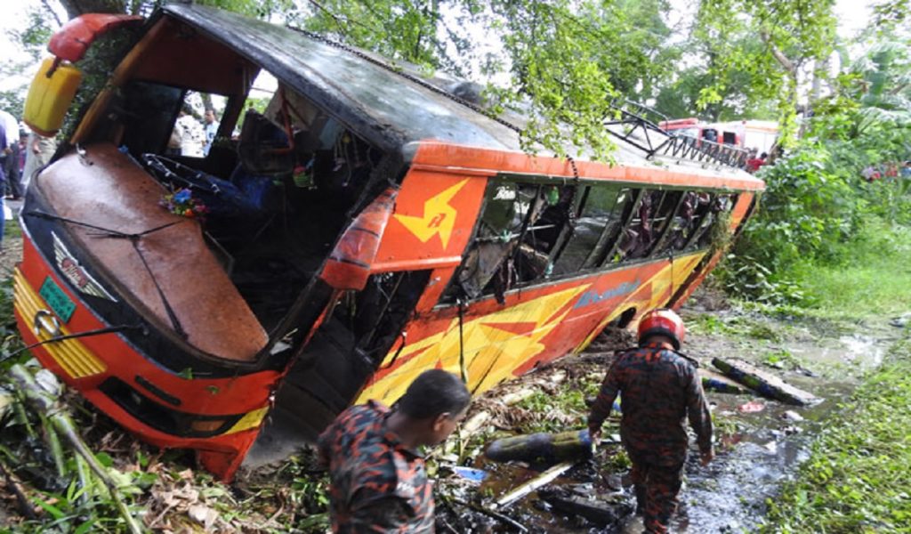 মাগুরার শালিখা উপজেলায় যাত্রীবাহী বাস নিয়ন্ত্রণ হারিয়ে রাস্তার পাশের খাদে পড়ে দুই নারীসহ চারজন নিহত হয়েছেন। আহত হয়েছে শিশুসহ আরও ১০ জন।
