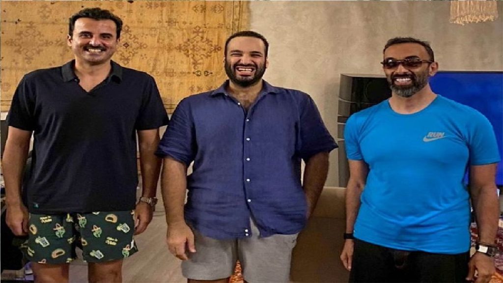 কাতারের আমির শেখ তামিম বিন হামাদ আল-সানি, সৌদি আরবের যুবরাজ মোহাম্মদ বিন সালমান বিন আবদুল আজিজ ও সংযুক্ত আরব আমিরাতের নিরাপত্তা উপদেষ্টা তাহনাউন বিন জায়েদের হাফ-প্যান্ট পরা একটি ছবি সামাজিকমাধ্যমে ভাইরাল হয়েছে। খবর গালফ নিউজ’র।