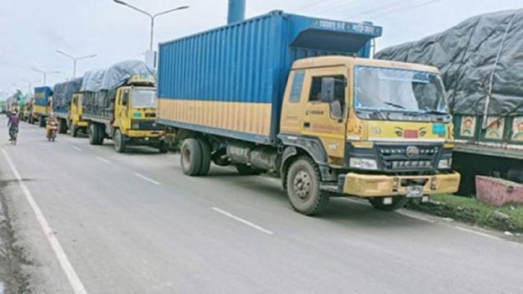 মঙ্গলবার সকাল ৬টা থেকে ৭২ ঘণ্টার কর্মবিরতি শুরু করেছে কাভার্ড ভ্যান, ট্রাক ও প্রাইমমুভার পণ্য পরিবহণ মালিক অ্যাসোসিয়েশন ও ট্রাকচালক শ্রমিক ফেডারেশন। মোটরযান মালিকদের অগ্রিম আয়কর বাতিলসহ ১৫ দফা দাবিতে সারাদেশে তাদের এ কর্মসূচি।