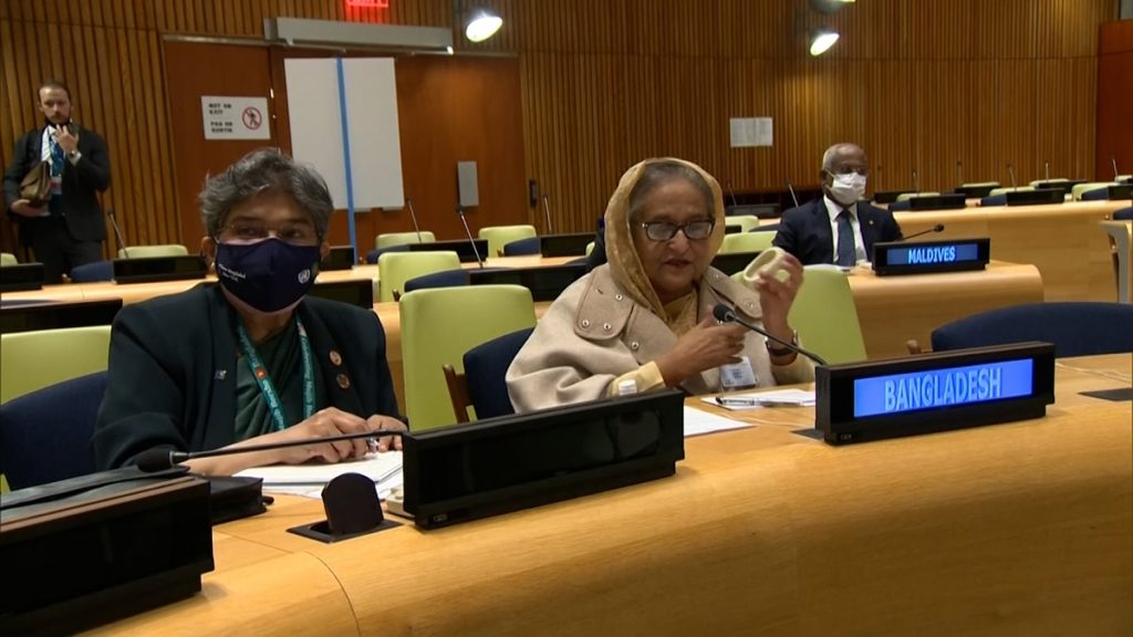জাতিসংঘ সদর দফতরে জলবায়ু পরিবর্তন ইস্যুতে বিভিন্ন রাষ্ট্র ও সরকার প্রধানদের রুদ্ধদ্বার বৈঠকে এই আহ্বান জানান তিনি। সংকট উত্তরণে বিশ্ব নেতাদের সামনে ৬টি প্রস্তাবও উপস্থাপন করেন প্রধানমন্ত্রী।