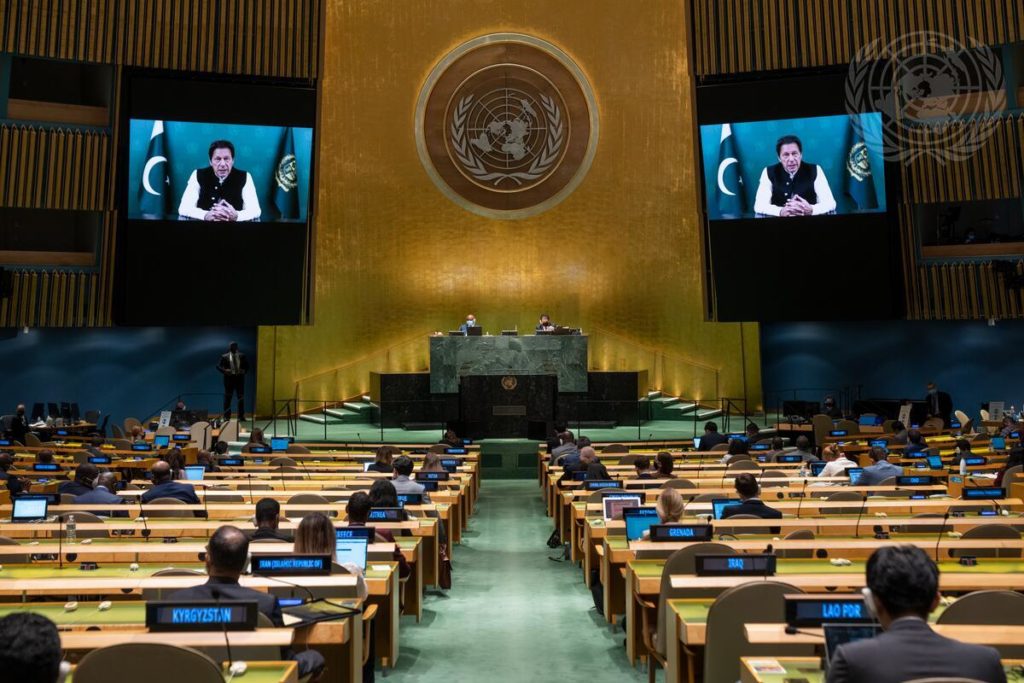 জাতিসংঘের ৭৬তম অধিবেশনে সশরীরে অংশ নেননি পাকিস্তানের প্রধানমন্ত্রী ইমরান খান। শোনানো হয় তার রেকর্ডেড বক্তব্য। তার ভাষণে চির বৈরী ভারতের বিরুদ্ধে ছিল নানা অভিযোগ।