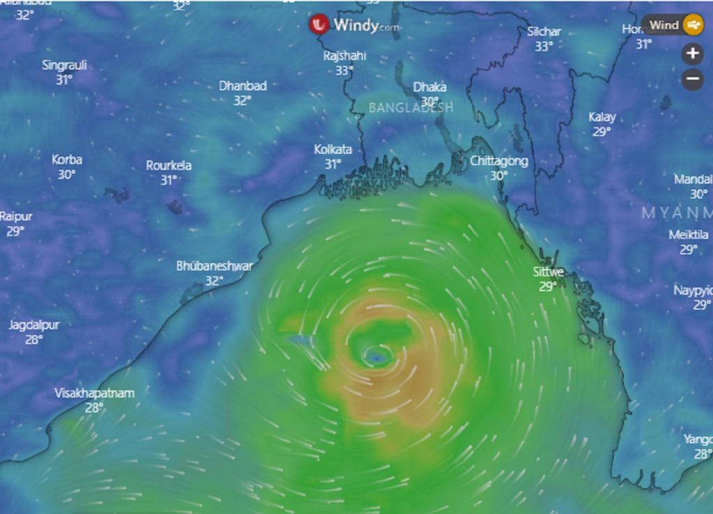 ভারতীয় সংবাদমাধ্যম আনন্দবাজার পত্রিকা বলছে, ইতোমধ্যেই ওড়িশা ও অন্ধ্রপ্রদেশ উপকূলে ঘূর্ণিঝড়ের সতর্কতা জারি করেছে ভারতের আবহাওয়া অধিদপ্তর। ভারী বৃষ্টি হওয়ার সম্ভাবনা আছে কলকাতাতেও।