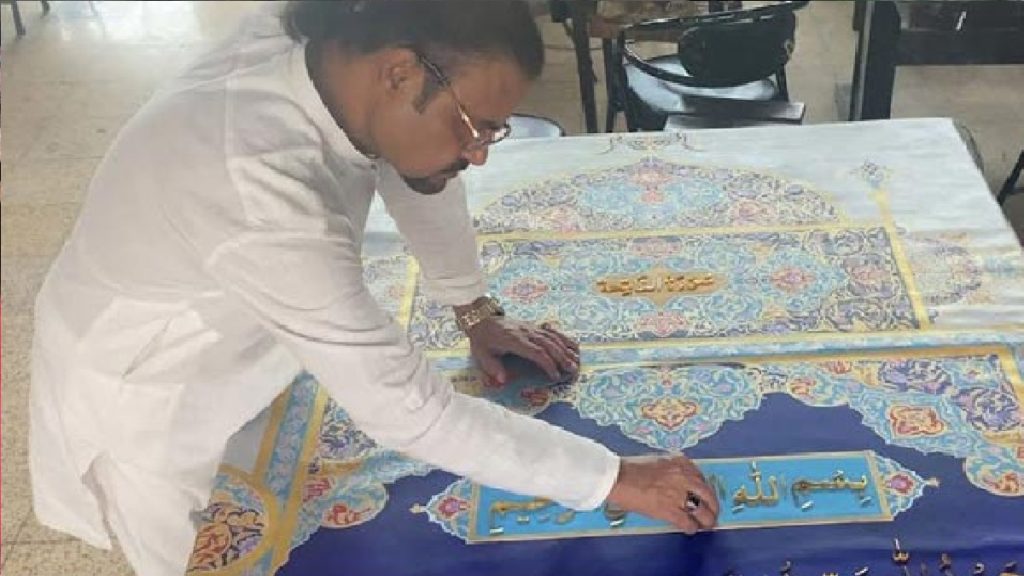 এবারই প্রথমবারের মতো অ্যালুমিনিয়াম ও স্বর্ণের প্রলেপ দিয়ে ক্যানভাসে কোরআনের সর্ববৃহৎ কপি খোদাই করা হয়েছে বলে জানায় জিও নিউজ ।