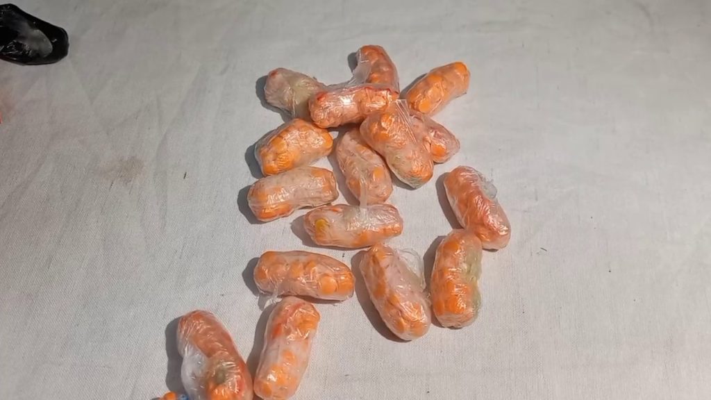 জেলা ডিবি পুলিশের ওসি প্রাণবন্ধু চন্দ্র বিশ্বাস জানান, টেকনাফ থেকে ইয়াবা ট্যাবলেটের চালান রাজবাড়ীতে আসছে এমন গোপন সংবাদের ভিত্তিতে সকালে দৌলতদিয়া ঘাটে অভিযান পরিচালনা করে দুই যুবককে আটক করা হয়। এ সময় আলহাজ নামের যুবকের প্যান্টের পকেট থেকে ৪৪০ পিস ইয়াবা উদ্ধার করা হয়। এবং অন্যজন জানায় তার পেটের ভেতর ইয়াবা আছে। পরবর্তীতে শহরের এক বেসরকারি হাসপাতালে নিয়ে পলাশকে এক্স-রে করে ইয়াবার প্রমাণ পাওয়া যায়। তখন বিশেষ কায়দায় পলাশের পেটের ভেতর থেকে ৮১০ পিস ইয়াবা বের করা হয়।