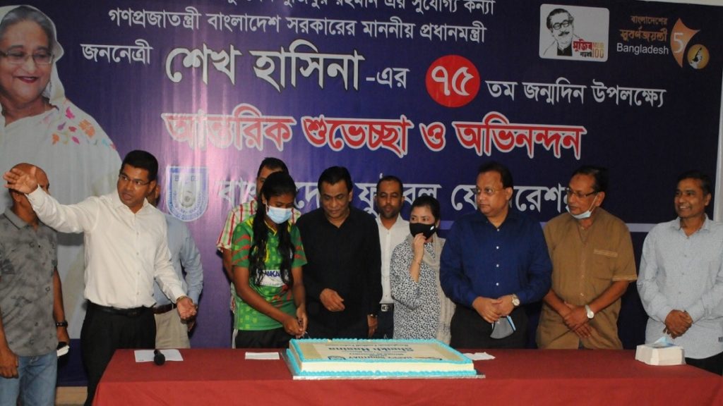বাফুফে ভবনে কোরআন খতমের মাধ্যমে দিনটি শুরু হয়। এরপরই হয় কেক কাটা। এসময় উপস্থিত ছিলেন ফিফা কাউন্সিল সদস্য ও নারী ফুটবল কমিটির চেয়ারম্যান মাহফুজা আক্তার কিরণ, বাফুফের মিডিয়া কমিটির চেয়ারম্যান জাকির হোসেনসহ বাফুফের অন্যান্য সদস্যরা। এরপর বাফুফে ভবন সংলগ্ন ঝিলপাড় জামে মসজিদে আয়োজন করা হয় মিলাদ ও দোয়া মাহফিল। এসময় প্রধানমন্ত্রীর দীর্ঘায়ু কামনা করা হয়।