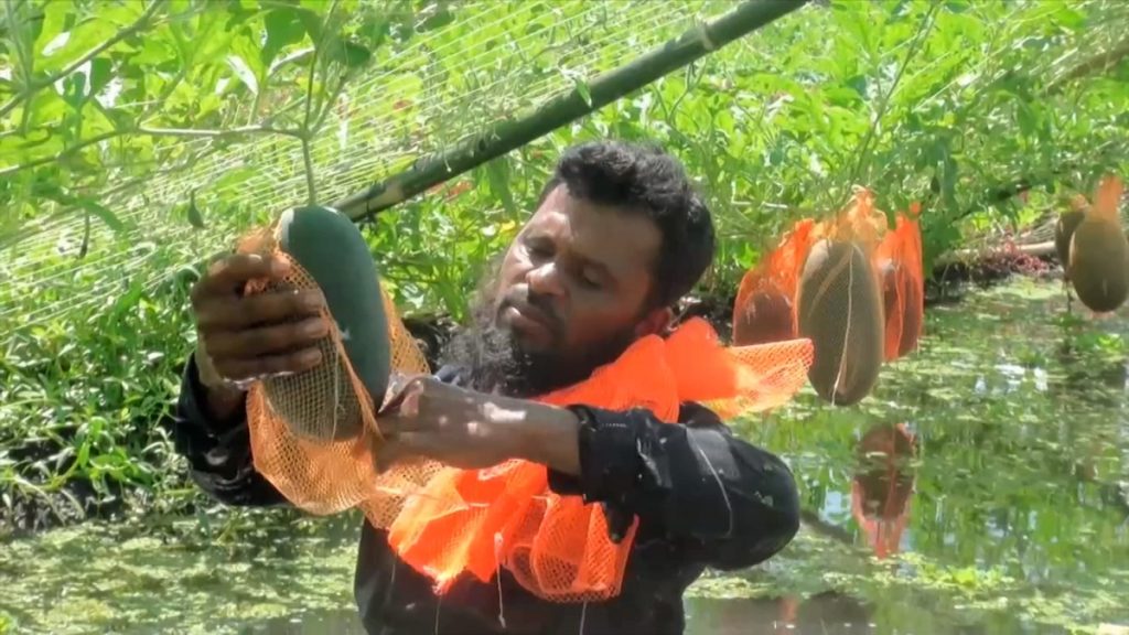 মৌসুম না থাকলেও তরমুজ ফলিয়ে তাক লাগিয়ে দিয়েছেন গোপালগঞ্জের নকড়িরচর গ্রামের কৃষক হানিফ মল্লিক। এর আগে প্রতিবছর বর্ষা মৌসুমে বর্ণি বাওড়ের কচুরিপানা দিয়ে ভাসমান ধাপ তৈরি করে শাক সবজির চাষ করতেন তিনি। চলতি মৌসুমে কৃষি সম্প্রসারণ অধিদফরের পরামর্শে ৪টি বেডে সবজির পরিবর্তে থাইল্যান্ডের সুইট ব্লাক-টু জাতের তরমুজ গাছ রোপন করেন। সেখানে মাত্র ৫০দিনে তিন শতাধিক তরমুজ ধরেছে। প্রতিটি তরমুজের ওজন হয়েছে আড়াই থেকে ৩ কেজি।