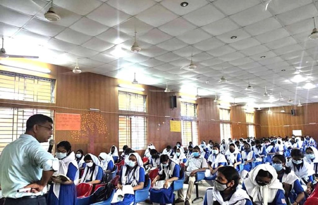 কুমিল্লার নবাব ফয়জুন্নেছা সরকারি বালিকা উচ্চ বিদ্যালয়ে দশম শ্রেণির শিক্ষার্থীদের জীববিজ্ঞান ক্লাস নিয়েছেন কুমিল্লা জেলা প্রশাসক মোহাম্মদ কামরুল হাসান।