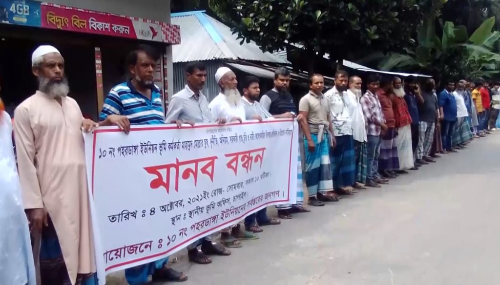 নড়াইলের কালিয়া উপজেলার পহরডাঙ্গা ইউনিয়ন ভূমি কর্মকর্তা মাহামুদ মোল্যার বিরুদ্ধে দুর্নীতি ও অনিয়মের অভিযোগ তুলে মানববন্ধন ও বিক্ষোভ মিছিল করেছেন এলাকাবাসী।