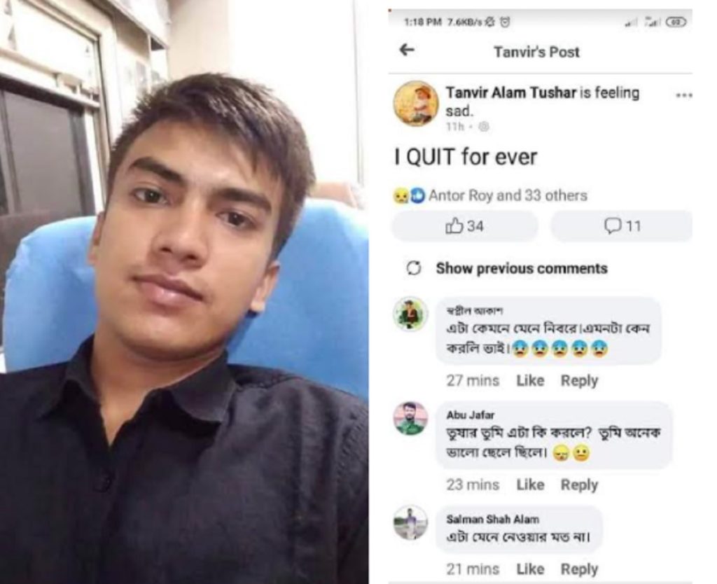 এরই এক পর্যায়ে বৃহস্পতিবার বেলা সাড়ে ১১টায় তুষার নিজ ঘরে গলায় মাল্টিপ্লাগের তার পেচিয়ে ঘরের পাইরের সাথে ঝুলিয়ে আত্মহত্যা করে। এর আগে নিজের ফেসবুকে ‘আই কুইট ফর এভার’ লিখে একটি স্ট্যাটাস দেয়।