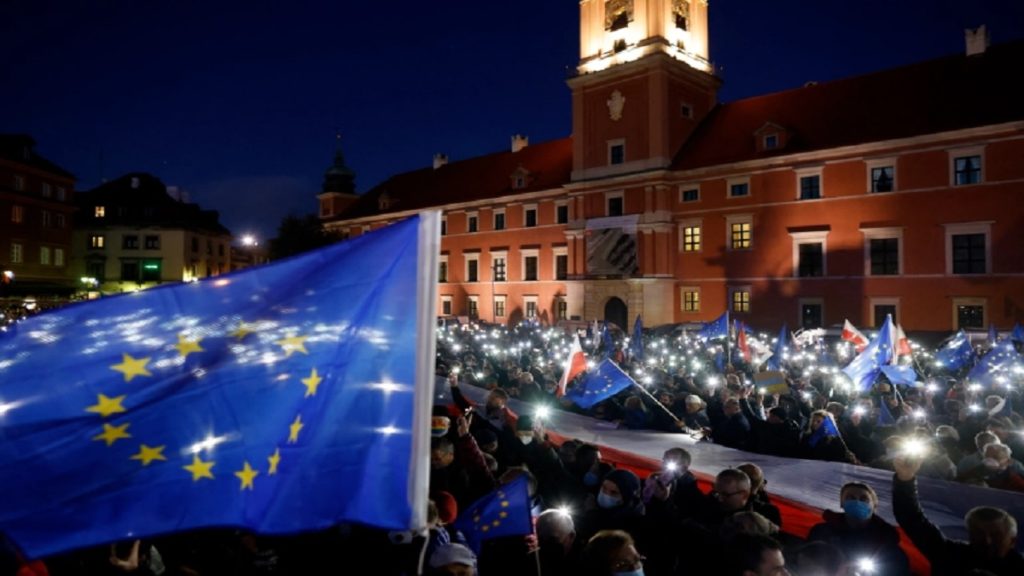 গুঞ্জন শোনা যাচ্ছিলো যুক্তরাজ্যের মতো ইউরোপীয় ইউনিয়ন থেকে বের হয়ে যেত পারে পোল্যান্ডও। এ নিয়ে এরইমধ্যে দেশটির জনগণও কার্যত দুভাগে বিভক্ত। গত রোববারই দেশটির শতাধিক শহরে পাল্টাপাল্টি বিক্ষোভ-প্রতিবাদ হয়েছে। শুধু রাজধানী ওয়ারশ’র রাস্তায় নামে লাখো মানুষ।