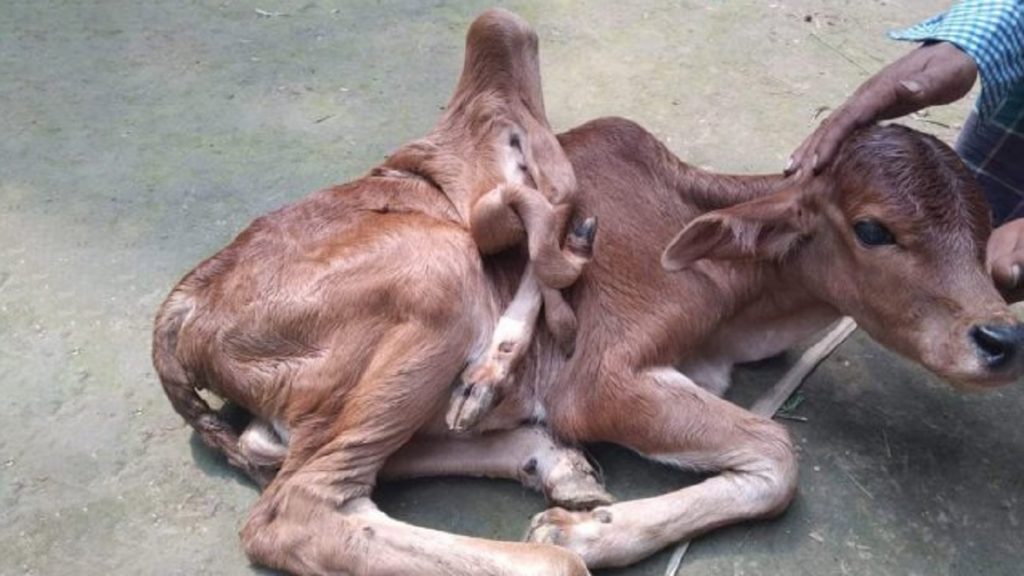 বাছুরের মালিক রূপধন মিয়া জানান, গত ১০ বছর যাবৎ লালনপালন করা গাভির চতুর্থ বাছুর এটি। জন্মের পর দেখতে পাওয়া যায় বাছুরটির আকৃতি ঠিক স্বাভাবিক নয়। চারটি পা ছাড়াও পিঠের উপরে বাছুরটির আছে আরও তিনটি পা। স্থানীয় উপজেলা পশু হাসপাতালের ডাক্তারের সাথেও যোগাযোগ করেন রূপধন মিয়া। অপারেশনের মাধ্যমে তিনটি পা অপসারণ করা যাবে বলে তাকে জানান ডাক্তার।