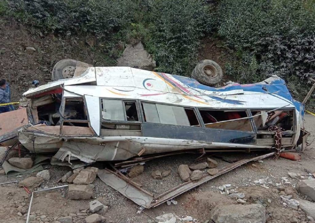নেপালের মুগা জেলায় মঙ্গলবার (১২ অক্টোবর) স্থানীয় সময় দুপুরে এ ঘটনা ঘটেছে। দুর্ঘটনার সঠিক কারণ এখনও জানা যায়নি। তবে পুলিশের ধারণা, বাসটি ব্রেক ফেল করায় তা নিয়ন্ত্রণ হারিয়ে এ ঘটনা ঘটে।
