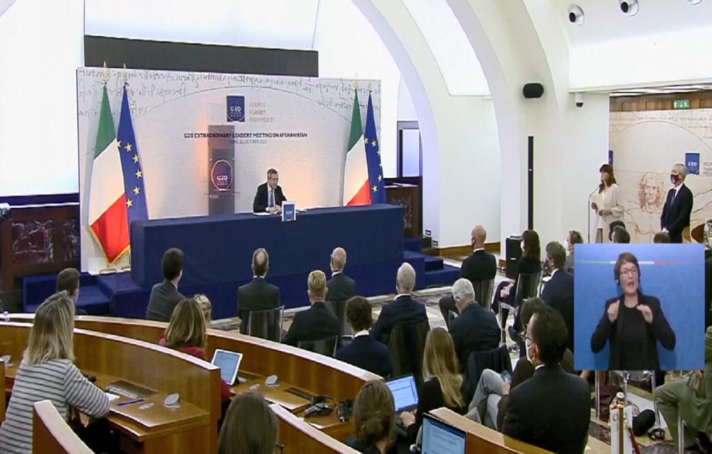 ইতালির প্রধানমন্ত্রী মারিয়ো দ্রাঘি বলেন, মানবিক সংকট মোকাবিলায় আফগানিস্তানকে জরুরি সহযোগিতা দেয়া প্রয়োজন। বিশ্ব নেতাদের একযোগে কাজ করতে হবে। জাতিসংঘকে একটি নীতিমালা নির্ধারণের আহ্বান জানাচ্ছি। কিন্তু সহায়তার জন্য তালেবানের সাথেই যোগাযোগ করতে হবে; কোনো বিকল্প নেই। তার মানে এই নয় যে- তালেবান সরকারকে অনুমোদন দিচ্ছে আন্তর্জাতিক মহল। তালেবানের কথা না বরং কাজ দেখেই নেয়া হবে সিদ্ধান্ত।