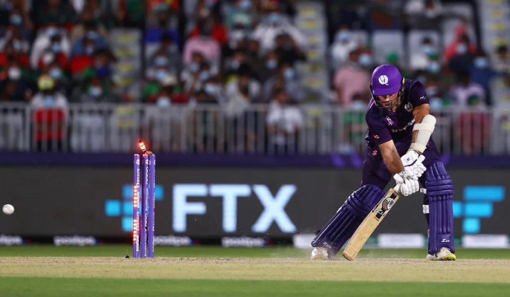 টি-টোয়েন্টি বিশ্বকাপের উদ্বোধনী দিনের দ্বিতীয় ম্যাচে স্কটল্যান্ডের বিপক্ষে টস জিতে ফিল্ডিং করছে বাংলাদেশ। স্কটিশ অধিনায়ক কোয়েটজার শূন্য রানেই ফিরে যান সাইফুদ্দিনের ইয়র্কারে বোল্ড হয়ে। তারপর থেকেই অপর ওপেনার জর্জ মান্সিকে সাথে নিয়ে রান বাড়ানোর চেষ্টা চালিয়ে যান ম্যাথু ক্রস। কিন্তু মেহেদি হাসান বোলিংয়ে এসেই এলবিডব্লিউয়ের ফাঁদে ফেলেন ক্রসকে। দুই বল পর জর্জ মান্সিকে পরিষ্কার বোল্ড করে ফেরান মেহেদি হাসান