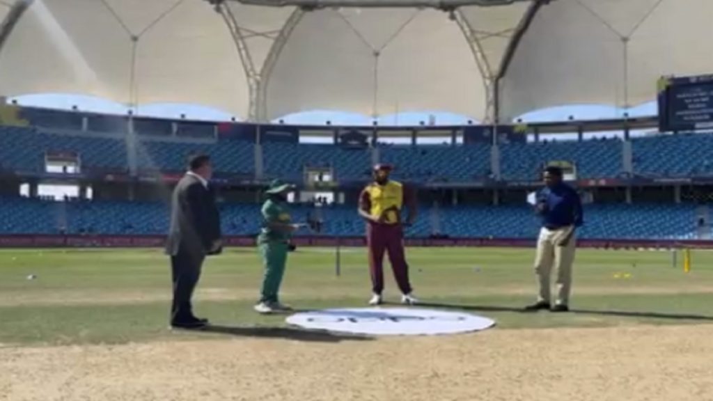 দুবাই ইন্টারন্যাশনাল ক্রিকেট স্টেডিয়ামে ওয়েস্ট ইন্ডিজের বিপক্ষে টসে জিতে ফিল্ডিংয়ের সিদ্ধান্ত নিয়েছে দক্ষিণ আফ্রিকা। প্রথম ম্যাচ হার দিয়ে শুরু করা ওয়েস্ট ইন্ডিজ ও দক্ষিণ আফ্রিকা দুই দলই চাইবে এবারের বিশ্বকাপের প্রথম জয়ের মুখ দেখতে।