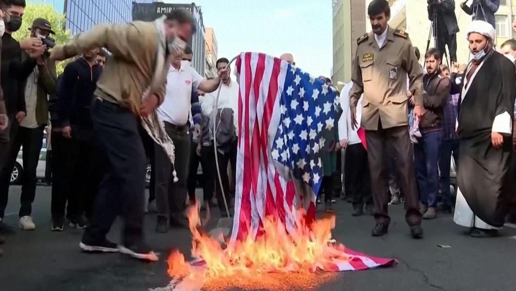 “যুক্তরাষ্ট্র নিপাত যাক, ইসরায়েল নিপাত যাক”, এমন স্লোগানে প্রকম্পিত ছিল তেহরানের রাজপথ। মার্কিন দূতাবাস দখলের ৪২ বছর পূর্তিতে পুরো রাজপথ যেন পরিণত হয়েছিল জনসমুদ্রে। সেই সমাবেশেই পোড়ানো হয় মার্কিন পতাকা। যুক্তরাষ্ট্রের চক্রান্তের বিরুদ্ধে সব সময়ই সোচ্চার ইরানের জনগণ, এমন প্রত্যয় বিক্ষুব্ধদের। একজন ইরানী নাগরিক বলেন, যুক্তরাষ্ট্র আমাদের নিঃশেষ করে দিতে চায়। পরমাণু আলোচনার নামে আমাদের হাতে পায়ে শেকল পড়াতে চায়। কিন্তু ইরানবাসী কখনোই তা মেনে নেবে না।