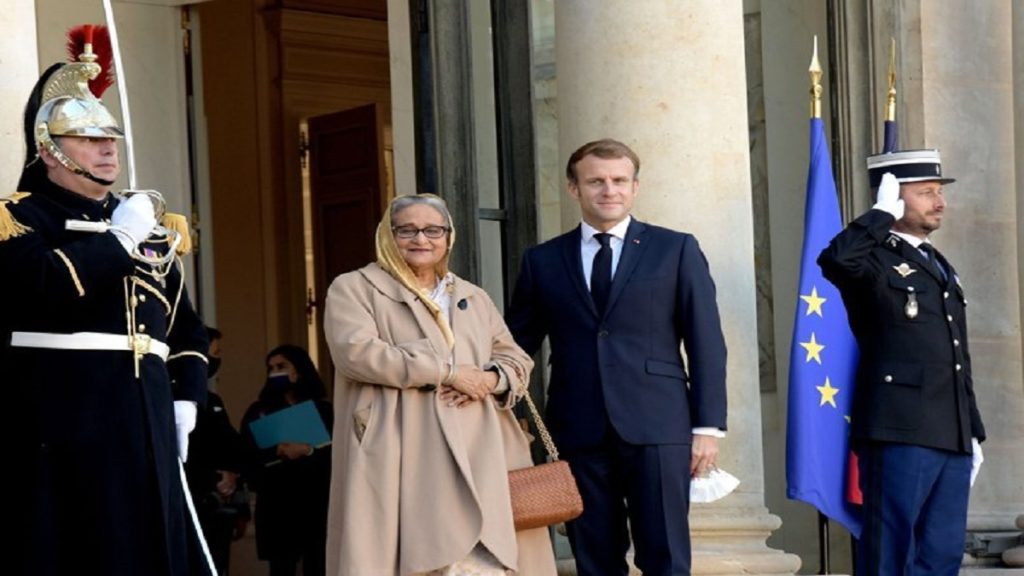 প্রধানমন্ত্রী শেখ হাসিনা প্যারিসে ফ্রান্সের প্রেসিডেন্ট এমানুয়েল মাখোঁর সঙ্গে বৈঠকের পর দুই দেশ প্রতিরক্ষা সহযোগিতার সম্মতিপত্রে সই করেছেন।