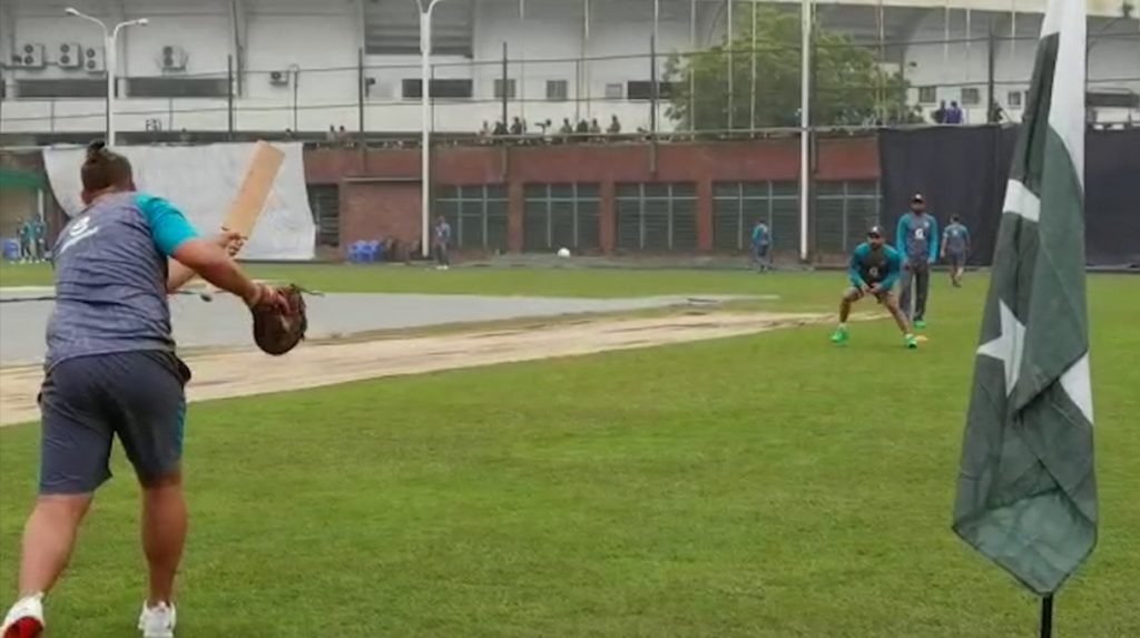 বাংলাদেশ সফরে এসে আজ (১৫ নভেম্বর) প্রথমবারের মত অনুশীলন করেছে পাকিস্তান জাতীয় ক্রিকেট দল। তবে সফরকারী দলের অনুশীলনের সময় অনেকের চোখেই ধরা পড়ে এক অভিনব জিনিস। হোম অব ক্রিকেটের উত্তর-পশ্চিম কোণে নেটের দুদিকে নিজেদের জাতীয় পতাকা টাঙিয়ে অনুশীলন করছেন পাকিস্তানি ক্রিকেটাররা।