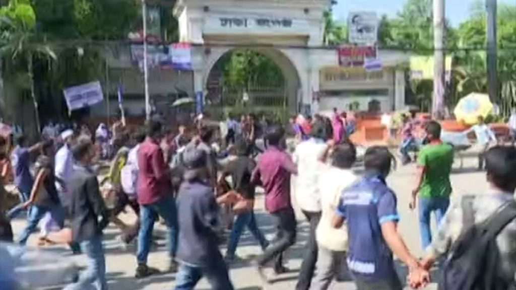 বৃহস্পতিবার (১৮ নভেম্বর) সকাল ১০টার দিকে নিউমার্কেট ও আশপাশের এলাকায় ঘণ্টাখানেকের জন্য যান চলাচল বন্ধ থাকে। তেলের দাম ও বাস ভাড়া বাড়ার অজুহাতে গত কয়েকদিন ধরেই শিক্ষার্থীদের সাথে খারাপ আচরণ করা হচ্ছে বলে অভিযোগ শিক্ষার্থীদের। ৱ