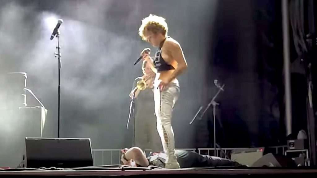 মার্কিন যুক্তরাষ্ট্রের জনপ্রিয় ব্যান্ড ব্রাস অ্যাগেইন্সট। ব্যান্ডটির সংগীতশিল্পী সোফিয়া উরিসতা কনসার্ট চলার সময়েই এক ভক্তের মুখে মূত্রত্যাগ করেছেন। ঘটনার পর ব্যাপক সমালোচনার মুখে পড়েছেন তিনি। ঘটনাটি ঘটেছে গত সপ্তাহের বৃহস্পতিবার। খবর নিউইয়র্ক পোস্টের।