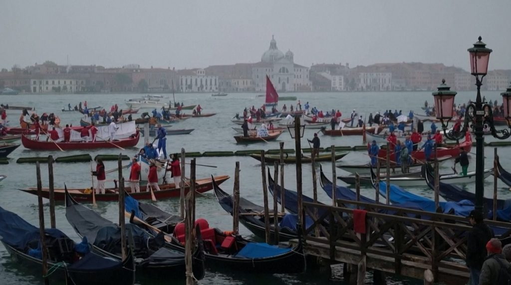 মোটরচালিত নৌকা বন্ধের দাবিতে ব্যাপক বিক্ষোভ হলো ইতালির ভেনিসে। শনিবার দাঁড় টানা নৌযান নিয়ে অংশ নেন শত শত বাসিন্দা।