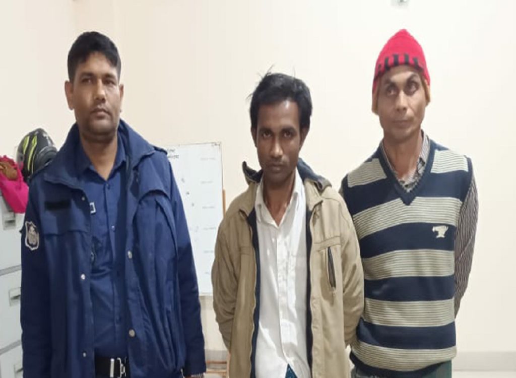 আটককৃতরা হলেন, উপজেলার কেদার ইউনিয়নের বাহের কেদার গ্রামের আবুল হােসেনের ছেলে ফরিদুল ইসলাম ও মৃত নাদুগীর ছেলে হিরেন্দ্রগীর।