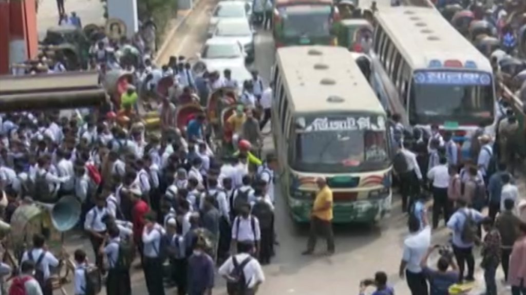 গণপরিবহনে নারীর নিরাপত্তা নিশ্চিত ও বাসে অর্ধেক ভাড়া কার্যকরের দাবিতে সরকারকে ৪৮ ঘণ্টার সময়সীমা বেঁধে দিয়ে রাজধানীর সায়েন্স ল্যাব এলাকা থেকে সরে এসেছে শিক্ষার্থীরা।
