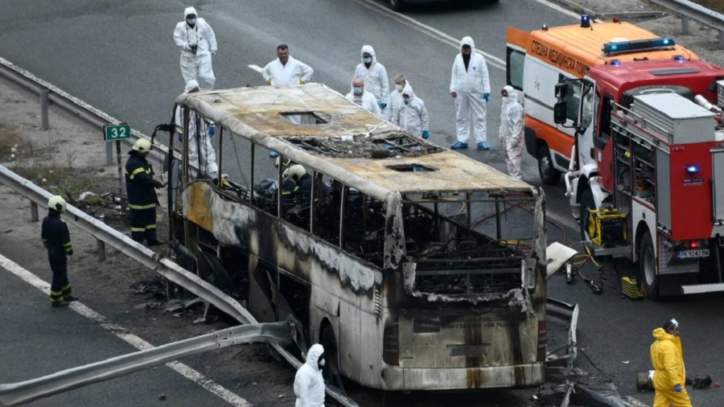 চলন্ত বাসে আগুন লেগে বুলগেরিয়ায় মৃত্যু হলো ১২ শিশু-সহ কমপক্ষে ৪৫ জন। সোমবার স্থানীয় সময় রাত ২টায় দেশটির পশ্চিমাঞ্চলে বসনেক নামে একটি গ্রামের কাছে দুর্ঘটনাটি ঘটে। প্রশাসন জানায়, মৃতরা সকলেই ছিলেন পর্যটক। তারা বেশিরভাগই প্রতিবেশি দেশ উত্তর মেসিডোনিয়ার নাগরিক।