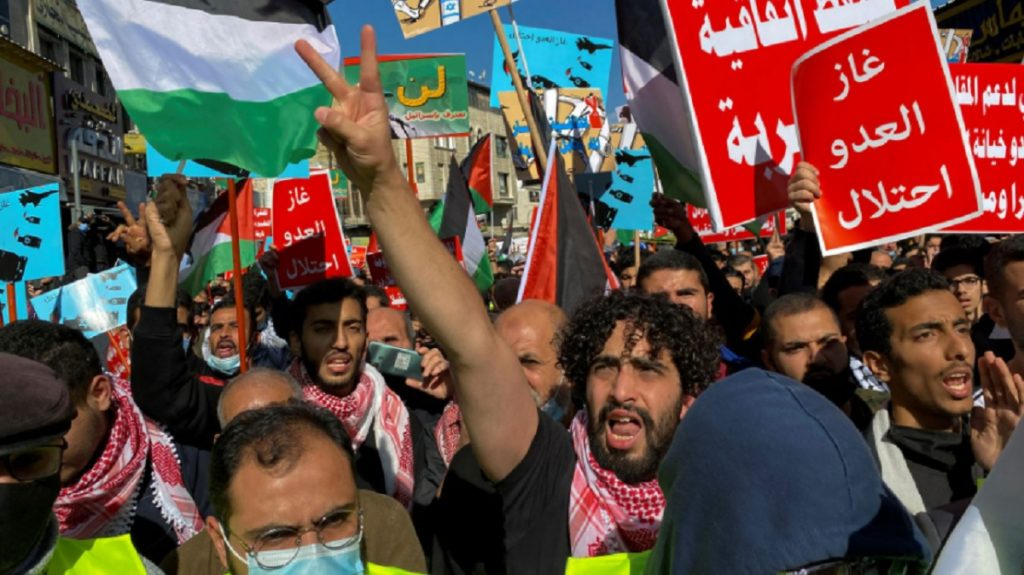ইসরায়েলের সাথে বিদ্যুৎ চুক্তি করার প্রতিবাদে বিক্ষোভে উত্তাল জর্ডান। জাতীয় পতাকা ও প্লাকার্ড হাতে আন্দোলন করছে দেশটির হাজার হাজার জনগণ।