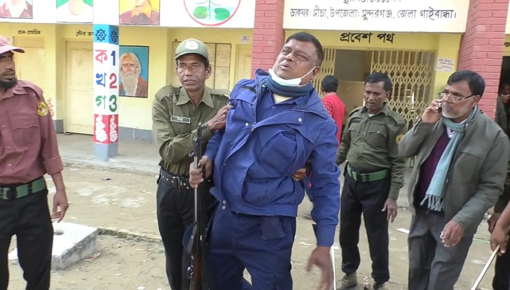 গাইবান্ধার সুন্দরগঞ্জ উপজেলার শ্রীপুর ইউনিয়নের একটি ভোটকেন্দ্রে হামলা ও ব্যালট পেপার ছিনতাইয়ের ঘটনা ঘটেছে। এসময় পুলিশ সদস্যসহ অন্তত ৫ জন আহত হয়েছেন। পরে পুলিশ ও আনছার সদস্যরা লাঠিচার্জসহ গুলি ও রাবার বুলেট ছুড়ে পরিস্থিতি নিয়ন্ত্রণে আনে। এ ঘটনার পর ওই কেন্দ্রে সাময়িকভাবে ভোটগ্রহণ স্থগিত করা হয়েছে।