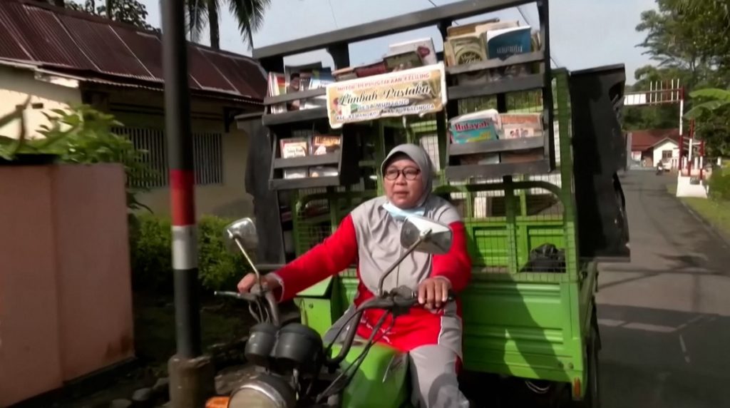 ইন্দোনেশিয়ার জাভা প্রদেশের মুনতাং শহরের বাসিন্দা রাদের রোরো। তিন চাকার একটি গাড়ি ৪৮ বছর বয়সী এ নারীর প্রতিদিনকার সঙ্গী। গাড়িটির বাহ্যিক সাজসজ্জা অনেকখানিই স্পষ্ট করে, এটি একটি ভ্রাম্যমাণ লাইব্রেরি। তবে এখানে রয়েছে আরও এক চমক। আবর্জনা কুড়িয়ে জমা করলে, তবেই মেলে এই লাইব্রেরির বই। একই সাথে শিশুদের বই পড়া ও পরিবেশের বিষয়ে সচেতন করে তুলতেই এমন উদ্যোগ নিয়েছেন তিনি। ইন্টারনেটের এই যুগে শিশুদের অনলাইন গেমস থেকে দূরে রাখতেও অবদান রাখছে কার্যক্রমটি।