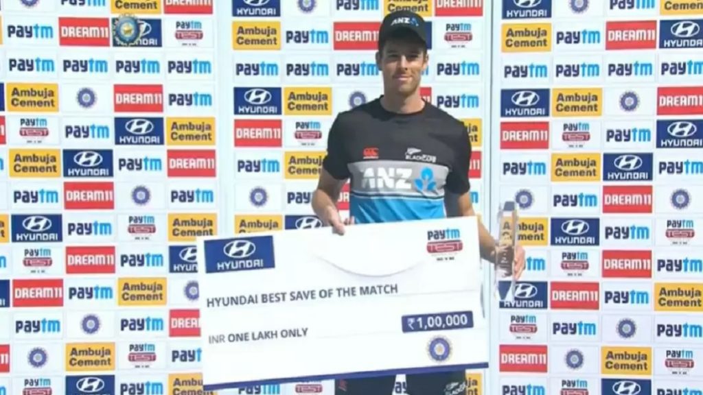 রাচিন রবীন্দ্র, আজাজ প্যাটেল ও উইলিয়াম সামারভিলের কারণে দলে জায়গা হয়নি স্যান্টনারের। তবে বদলি ফিল্ডার হিসেবে মাঠে নেমে বাজিমাত করেন এই কিউই। পুরো টেস্ট জুড়েই চোখ ধাঁধানো ফিল্ডিং ছিল এই বাঁহাতি অর্থোডক্স স্পিনারের। যার স্বীকৃতিস্বরূপ বেস্ট সেভ অব দ্য ম্যাচের পুরস্কার পান মিচেল স্যান্টনার।
