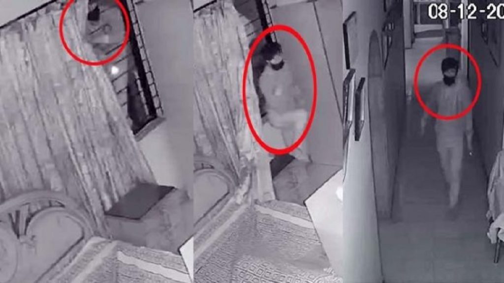 সিসিটিভির ফুটেজে দেখা যায়, বুধবার (৮ ডিসেম্বর) ভোর ৬টার দিকে রুমের জানালার পর্দা সরিয়ে টর্চলাইট দিয়ে ঘরের ভেতর দেখছে চোরচক্রের এক ব্যক্তি। ঘরে কেউ নেই নিশ্চিত হয়ে শুরু করে গ্রিল কাটা। এর ৫ মিনিট পর মুখে কালো কাপড় পরা এক চোর রুমে ঢুকে পড়ে। সিসিক্যামেরা চোখে পড়লে লেন্সের সামনে সেঁটে দেয় কাগজ। কিন্তু আরেকটি সিসিটিভি ক্যামেরায় ধরা পড়ে বাকি ঘটনা।