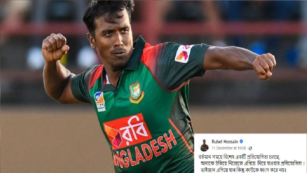 অনেক দিন ধরেই বাংলাদেশ জাতীয় ক্রিকেট দলের বাইরে অন্যতম সেরা পেসার রুবেল হোসেন। সম্প্রতি স্কোয়াডে যুক্ত হলেও কোনো কারণ ছাড়াই বাদ পড়েন তিনি। এমতাবস্থায় সামাজিক যোগাযোগমাধ্যম ফেসবুকে এক স্ট্যাটাস দিয়েছেন এই পেসার। শনিবার (১১ ডিসেম্বর) নিজের ভেরিফায়েড ফেসবুক পেজে তিনি স্ট্যাটাস দেন।