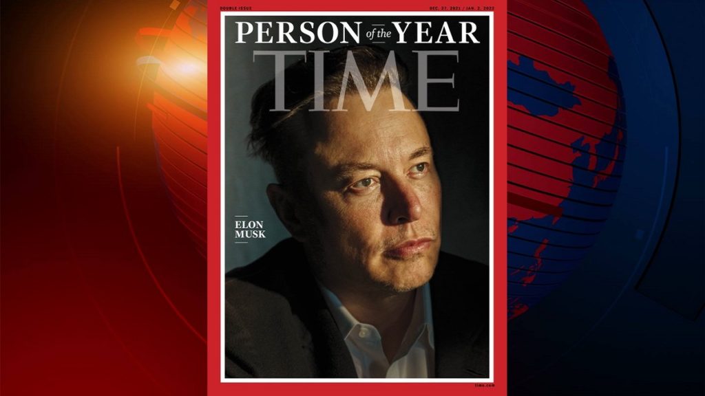 বিশ্বসেরা গাড়ি নির্মাতা প্রতিষ্ঠান টেসলার প্রধান নির্বাহী কর্মকর্তা ও মহাকাশযান নির্মাতা প্রতিষ্ঠান স্পেস এক্সের সহপ্রতিষ্ঠাতা এলন মাস্ককে বর্ষসেরা ব্যক্তিত্ব ঘোষণা করেছে মার্কিন সাময়িকী ম্যাগাজিন টাইম। সিএনএনের খবর বলছে, সোমবারই টাইম এ ঘোষণা দেয়।