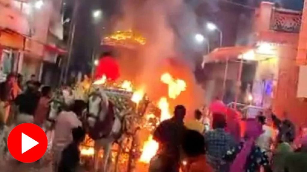 বিয়ের আনন্দ মুহূর্তে আতঙ্কে পরিণত হলো। সুসজ্জিত ঘোড়ার গাড়িতে চেপে বিয়ে করতে যাচ্ছিলেন এক যুবক। বরযাত্রীরা বাজনার সঙ্গে বাজি ফাটাতে ফাটাতে বরের গাড়ির সঙ্গে যাচ্ছিলেন। হঠাৎ সেই বাজির একটি বরের গাড়িতে পড়ে আগুন ধরে যায়। এ সময় প্রাণে বেঁচে গেছেন বর। ঘটনাটি ঘটেছে ভারতের গুজরাটের পাঁচমহলে। খবর আনন্দবাজার পত্রিকার।