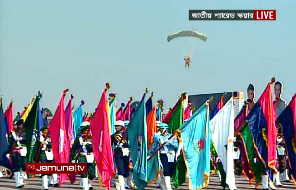 মহান বিজয়ের সুবর্ণজয়ন্তী উপলক্ষে জাতীয় প্যারেড গ্রাউন্ডে হলো সম্মিলিত বাহিনীর বর্ণাঢ্য কুচকাওয়াজ।
