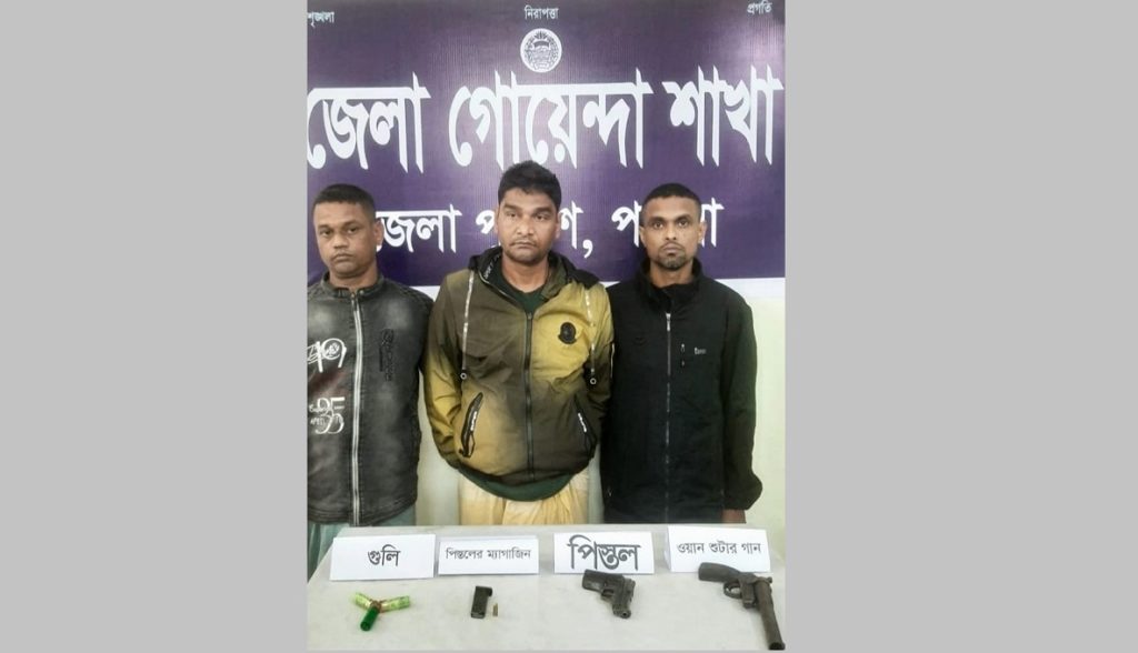 পাবনা সদর উপজেলার ভাঁড়ারা ইউনিয়নের স্বতন্ত্র চেয়ারম্যান প্রার্থী ইয়াছিন আলম খান (৩২) হত্যা মামলায় তিনজনকে গ্রেফতার করেছে পুলিশ। এসময় তাদের কাছ থেকে দুইটি অবৈধ অস্ত্র ও গুলি উদ্ধার করা হয়।