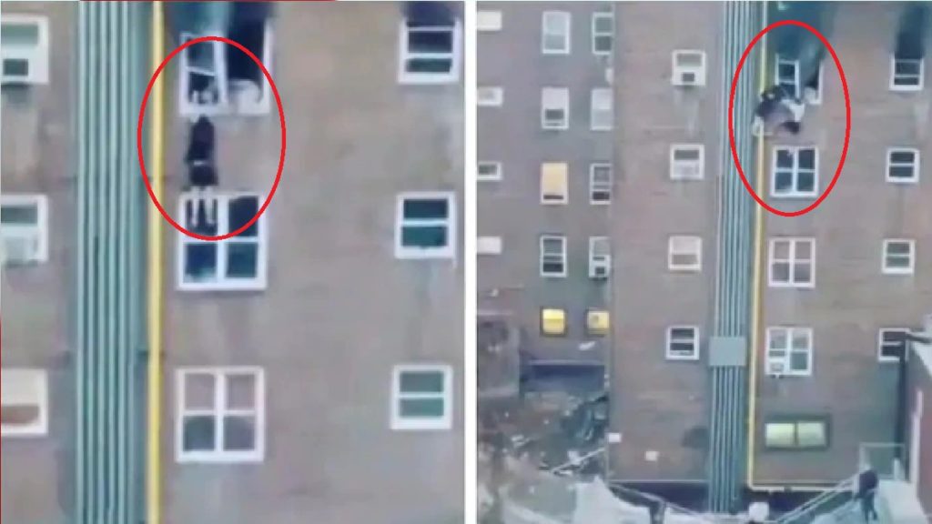 ভারতীয় গণমাধ্যম জিনিউজের প্রতিবেদনে বলা হয়, ঘটনাটি ঘটেছে নিউইয়র্ক সিটির ইস্ট ভিলেজে। একটি জ্বলন্ত বিল্ডিং থেকে দুই কিশোরের ঝুলন্ত ভয়ঙ্কর ভিডিও অনলাইনে ভাইরাল হয়েছে। ভাইরাল হওয়া ভিডিওতে দেখা যায় ১৩ এবং ১৮ বছর বয়সি দুই কিশোর জানালা দিয়ে জ্বলন্ত বিল্ডিং থেকে পালানোর চেষ্টা করছে। প্রথমে একজন ওই জানালার ফ্রেমটি ধরে ঝুলে পড়ে। তার দেখাদেখি অপরজনও তা করে।