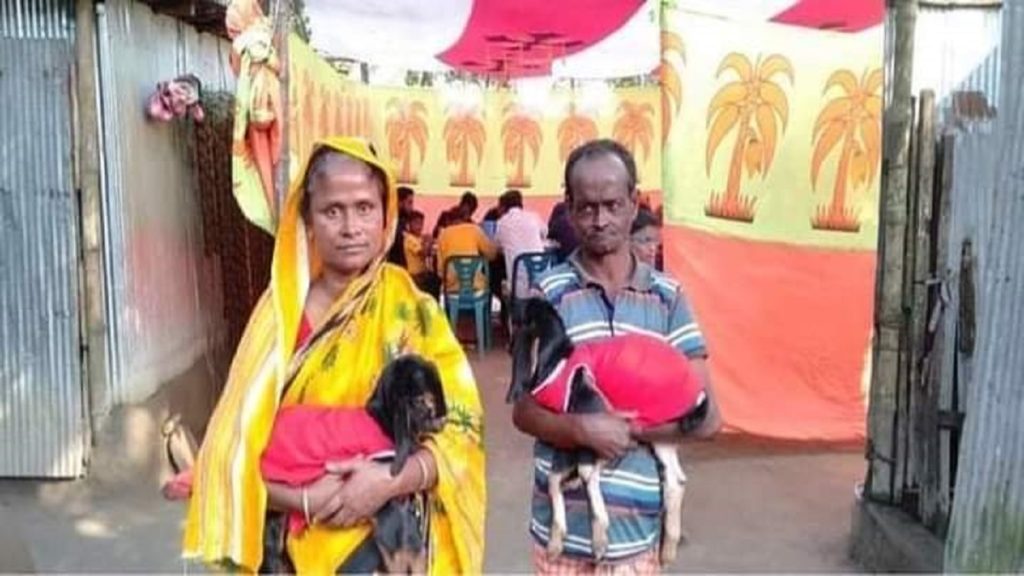আলোচিত এ দম্পতি হলেন ওই গ্রামের দিনমজুর ওহাব ও লাইলী বেগম। এদিকে ব্যতিক্রমী এমন আয়োজনের খবর ছড়িয়ে পড়ে এলাকায়। খবর পেয়ে উৎসুক জনতা তাদের বাড়িতে ভিড় করেন ঘটনা জানতে ও ছাগলের বাচ্চা দু’টি দেখতে।