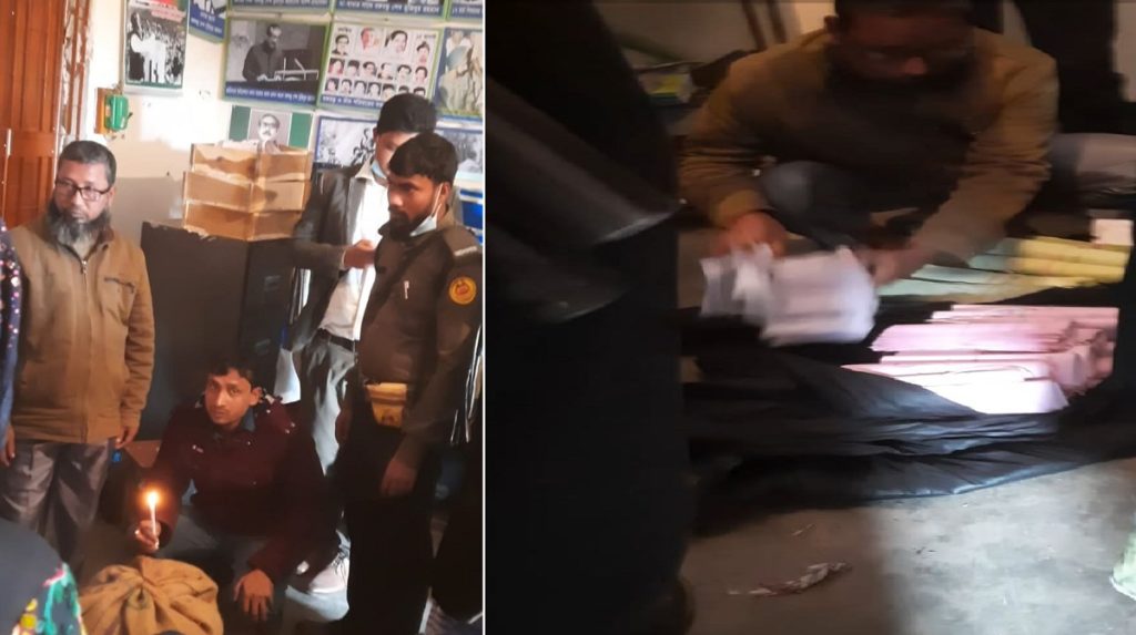 আজ মঙ্গলবার (২৮ ডিসেম্বর) সকালে শেরপুরের শ্রীর্বদী উপজেলার রানীশিমুল ইউনিয়নের বাঘবেদ প্রাথমিক বিদ্যালয়ের কেন্দ্রের দায়িত্বে থাকা প্রিজাইডিং অফিসার সাবেত আলীকে আটক করে জনতা। তিনি গোপনে ওই স্কুলের পিয়নের সাথে যোগাযোগ করে ব্যালটপেপার সরানোর চেষ্টা করছিলেন।