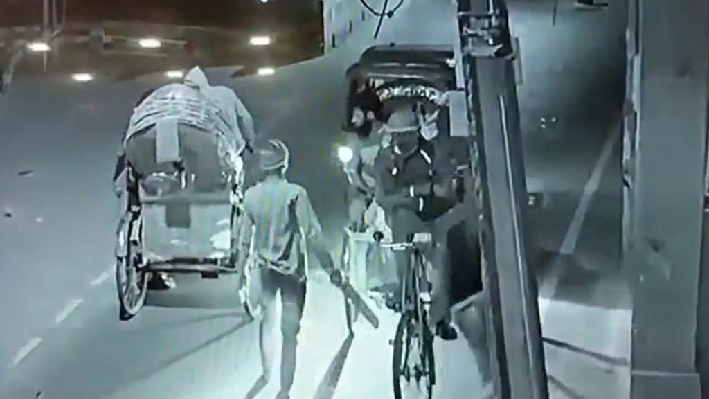 প্রথমে একজন একটি ধারালো চাপাতি নিয়ে রাস্তায় এসে একটি রিকশার গতিরোধ করে একজন। এরপর আরও দুইজন বেরিয়ে আসে। এসময় উল্টোদিক থেকে আসা আরও একটি রিকশা আটকে যাত্রীকে চাপাতি দেখিয়ে তার কাছ থেকে কিছু একটা নিয়ে পকেটে ঢোকায় এবং রিকশাটিকে ছেড়ে দেয়। আর এর মধ্যে শিশুসহ তিন আরোহীসহ আটককৃত প্রথম রিকশাটির যাত্রীদেরও চাপাতি দেখিয়ে তাদের কাছ থেকে লুটপাট করে তারা।