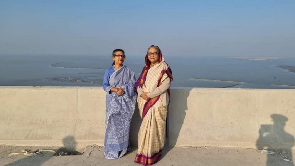 বছরের শেষ দিনে সহোদরা শেখ রেহানাকে সাথে নিয়ে পদ্মা সেতুতে হেঁটেছেন প্রধানমন্ত্রী শেখ হাসিনা। কিছুটা হেঁটে এবং কিছুটা গাড়িতে চড়ে স্বপ্নের পদ্মা সেতু পরিদর্শন করেন তারা।