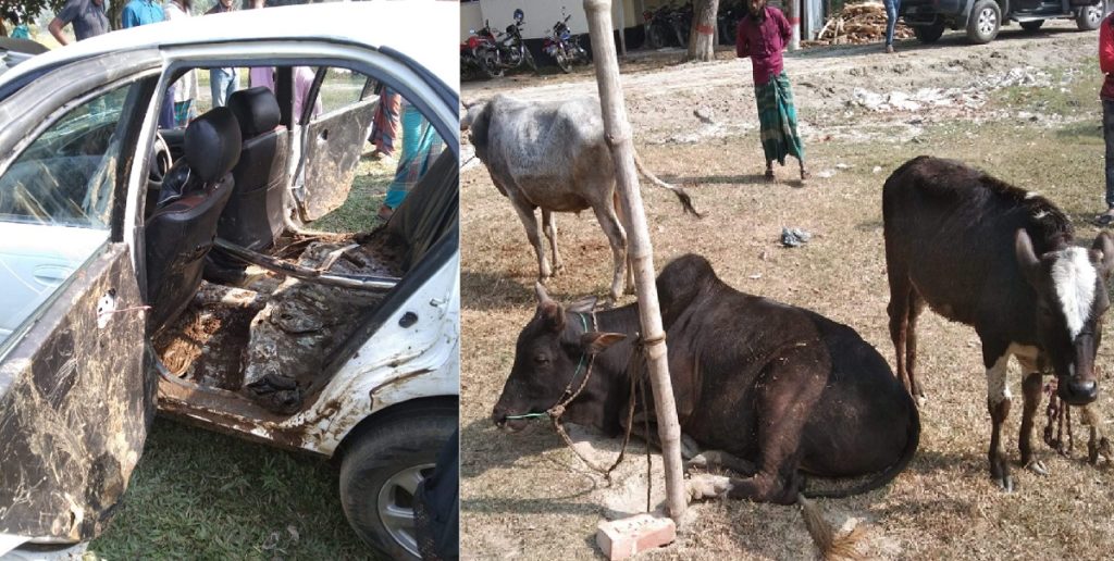 কথায় আছে- গল্পের গরু গাছে ওঠে। তবে গাছে নয়, ময়মনসিংহে এবার চুরি করা গরু উঠলো প্রাইভেটকারে। তাও আবার সংখ্যায় তিনটি!