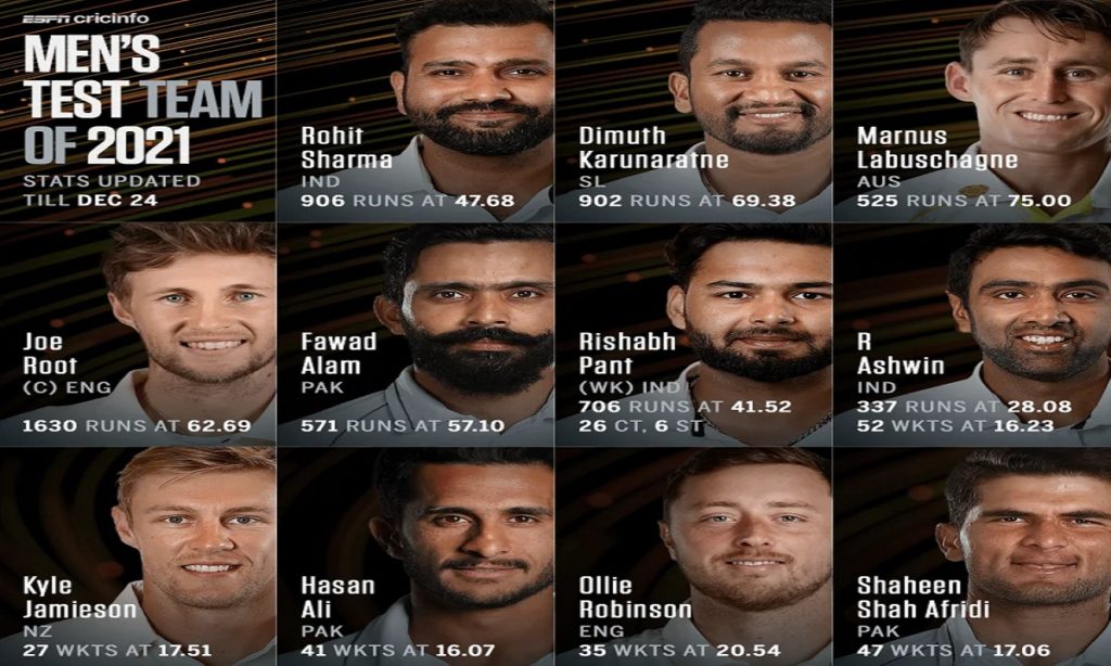 বিশ্বের জনপ্রিয় ওয়েবসাইট ইএসপিএন-ক্রিকইনফো’র বর্ষসেরা টেস্ট একাদশে জায়গা পেয়েছেন ৩ জন করে ভারত ও পাকিস্তানের ক্রিকেটারের। ওপেনার রোহিত শর্মা জায়গা করে নিয়েছেন বর্ষসেরা টেস্ট একাদশে। এছাড়া উইকেটকিপার হিসেবে রয়েছেন মারকুটে ব্যাটার রিশাভ পান্ত। দলের একমাত্র স্পিনার হিসেবে আছেন লাল বল হাতে দারুণ একটি বছর কাটানো রবিচন্দ্রন অশ্বিন।