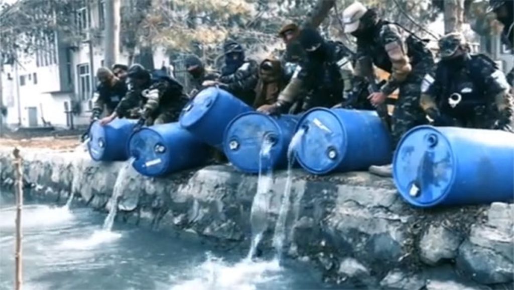 রোববার (১ জানুয়ারি) এ বিষয়টি প্রকাশ করে জিডিআই। এ নিয়ে একটি ভিডিও প্রকাশ করা হয়েছে টুইটারে। সেখানে দেখা যাচ্ছে, ড্রামে করে জব্দকৃত মদগুলো খালের পানিতে ফেলে দিচ্ছেন তালেবানের গোয়েন্দা সংস্থার সদস্যরা। মদ বিক্রির অপরাধে তিনজন ব্যবসায়ীকেও আটক করা হয়েছে বলে জানানো হয়। তবে এই মদ কবে জব্দ করা হয়েছে বা কবে নাগাদ খালে ফেলে দেয়া হলো, সে সম্পর্কে কোনো তথ্য প্রকাশ করা হয়নি।