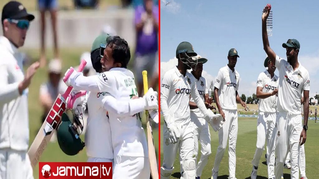 আমরা করবো জয়, গানটি পরিণত হয়েছে টাইগারদের থিম সংয়ে। বাংলাদেশের ১৬ তম টেস্ট জয়ের পরও ড্রেসিংরুমে গাওয়া হয়েছে এই গান। অনেক প্রথমের ইতিহাস বদলেরও ছিল এই মাউন্ট মঙ্গানুই টেস্ট জয়। ১০ বছর আগে ভলিবল প্লেয়ার হিসেবে এয়ারফোর্সে জয়েন করা এবাদত হোসেন ম্যাচ সেরা হলেন নিউজিল্যান্ডের মাটিতে বে ওভালে। এভাবেই বদলায় ইতিহাসের পাতা, বদলান এবাদতরা।