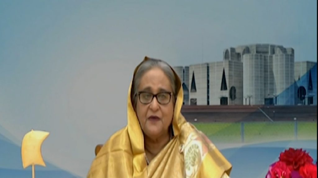 ভাষণের শুরুতেই উঠে আসে করোনা মহামারির বিষয়টি। নতুন ভ্যারিয়েন্টের কারণে সংক্রমণ আবার উর্ধ্বমূখী হওয়ায় সবাইকে সতর্ক থাকার আহবান জানান শেখ হাসিনা।