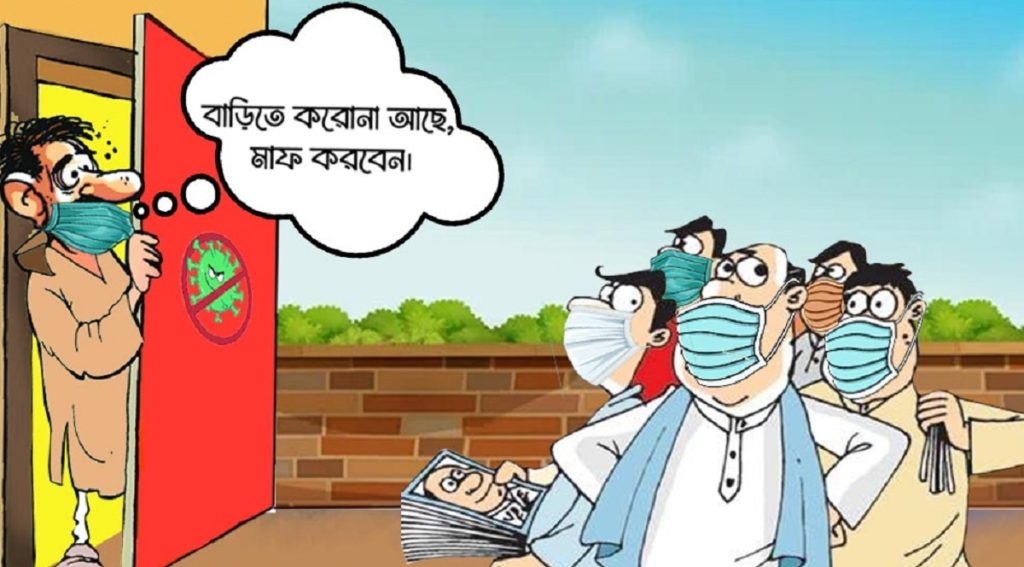 এক বিজেপি প্রার্থী বলেন, শেষবার বাড়ি বাড়ি প্রচারের চেষ্টা করেছিলাম গত রোববার। পর পর তিনটি বাড়িতে কলিং বেল বাজাতেও দরজা খুলল না। উপরতলার কোনও একটি জানলা একটুখানি খুলে জানালেন, ‘বাড়িতে আমরা সবাই করোনা আক্রান্ত। পরে আসবেন।’ আরেক বাড়িতে বললো, ‘আমরা কেউ ভোট দেব না। মাফ করবেন।’ শুনে চলে এলাম। তার পর আর যাইনি।